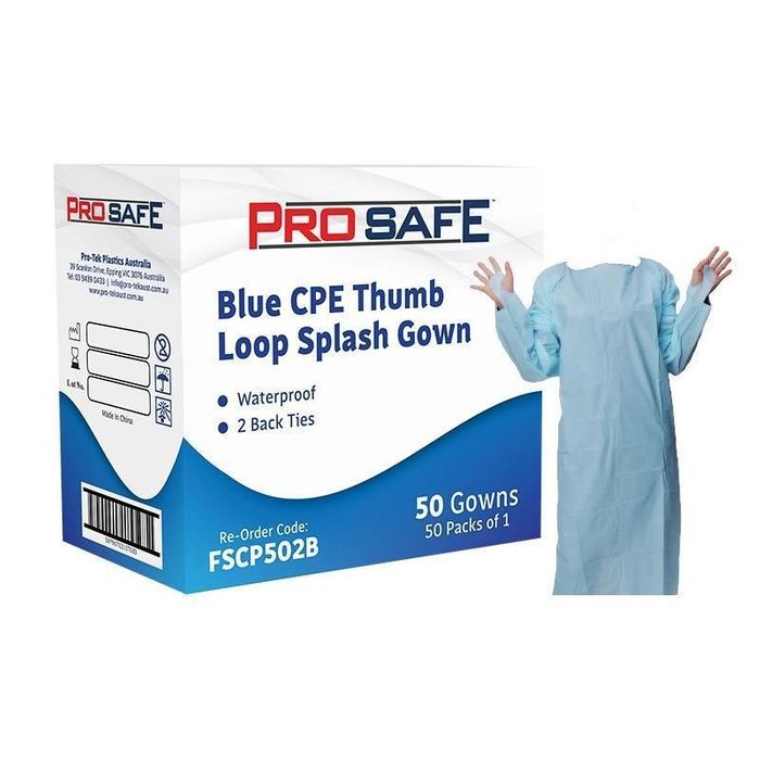 ProSafe CPE Thumb Loop Splash Gown is waterproof with 2 back ties.