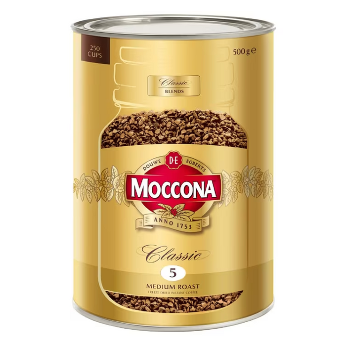This 500g tin of Moccona Classic Medium Roast Coffee is perfect for keeping your workplace tea room or home pantry well stocked. Crafted from a premium blend of Arabica and Robusta coffee beans, it delivers a smooth, full-bodied flavour with a balanced aroma. The medium roast profile offers a rich yet mellow taste, ideal for everyday enjoyment. As an instant coffee, it’s quick and easy to prepare—just add hot water for a satisfying cup. Packaged in a secure tin to keep the coffee fresh and flavourful.