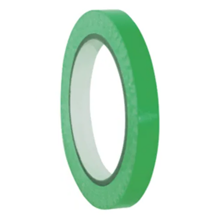 PVC Green Bag Sealer Tape, ideal for various applications such as bag neck sealing and product identification in packaging. This coloured PVC tape features a silent release and a robust rubber solvent adhesive, ensuring secure sealing and durability. It measures 12mm in width and 66m in length, with a core diameter of 76mm, making it suitable for frequent use. The tape is acid-free and specifically designed for colour coding in packaging or general work tasks. Sold per roll and available in cartons of 144, it's a versatile choice for your packaging needs.