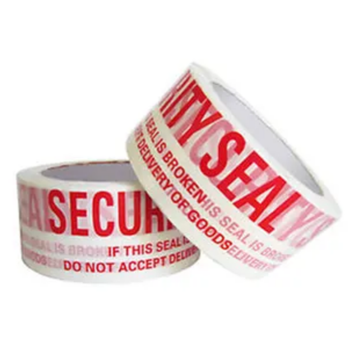 Security Tape, red text on white, measuring 48mm x 66m. This high-impact tape is designed to ensure your handling instructions stand out, protecting your goods from mishandling. Sold per roll and available in cartons of 36, it provides a clear and effective solution for secure packaging.