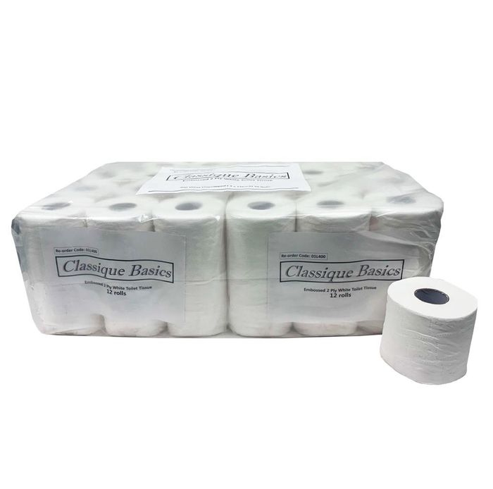 Classique Basic White Toilet Tissue 2 Ply offers a reliable and economical choice for everyday hygiene needs. Each roll features 400 soft and absorbent 2-ply sheets, providing a comfortable and effective clean. Ideal for use in offices, commercial spaces, and households, this toilet tissue combines quality with value. Supplied in a convenient pack of 4 bags, each containing 12 rolls, it’s perfect for bulk purchasing and ensures you stay well-stocked. Made from quality materials, the CLASSIQUE Basic toilet tissue is a practical and dependable option for high-traffic environments.