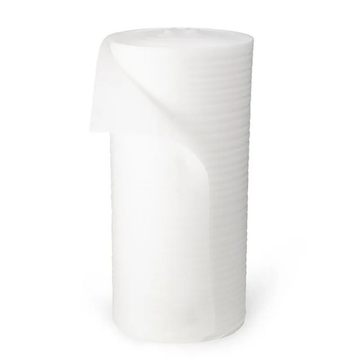 Poly Foam 1.2m x 100m x 1mm, made from low-density polyethylene resins with HCFC and CFC free gases, is a lightweight, non-abrasive, and chemically inert material. This waterproof and 100% recyclable foam offers excellent thermal insulation and is ideal for packaging highly polished surfaces and cushioning fragile items against shock. Its soft texture makes it the perfect solution for a variety of protective packaging needs.