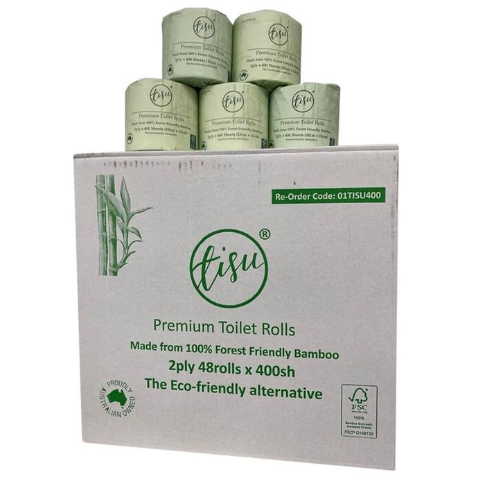 Tisu Bamboo FSC 400's Toilet Roll 2 Ply, where eco-friendly luxury meets everyday convenience. Each roll contains 400 sheets of premium bamboo toilet tissue, providing a soft and durable experience. FSC-certified, this toilet tissue is made from sustainable bamboo sources, ensuring an environmentally responsible choice for your bathroom. Available in cartons of 48 rolls, Tisu Bamboo Toilet Tissue offers a sustainable upgrade to your bathroom essentials without compromising on quality or comfort.