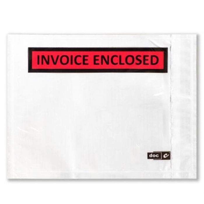 Invoice Enclosed Envelopes, measuring 150mm x 115mm, are printed in black and red on clear material with a white backing. These envelopes are designed to securely enclose invoices and other important documents. They are sold in boxes of 1000 envelopes, ensuring you have ample supply for your business needs.
