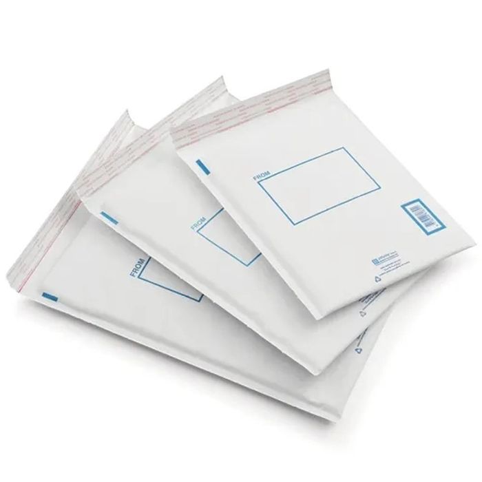 Jiffy Lite Bags No. 00 are lightweight bubble-cushioned mailers with a white kraft paper exterior, designed to provide both rigidity and cushioning for products that require enhanced protection during transit.