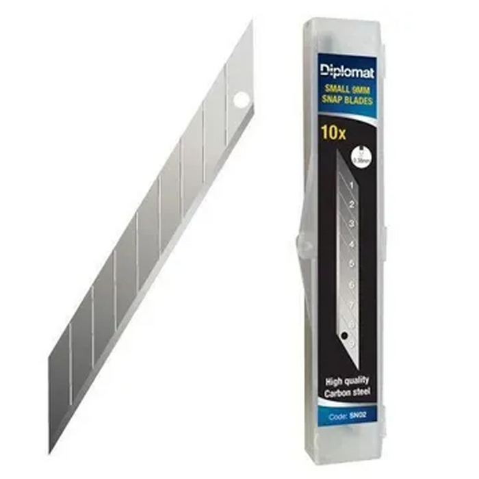 This small snap off blade is designed for detailed and precise cutting tasks, featuring a 9mm width and 13 break points for extended use. Its compact size makes it perfect for intricate work, providing a sharp edge that can be easily snapped off to reveal a new blade. Each tube contains 10 high-quality blades, ensuring you always have a fresh blade on hand when needed. Ideal for hobbyists, craftsmen, and professionals alike.