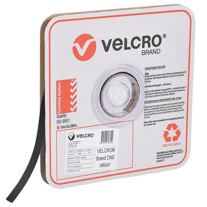 The VELCRO One Wrap Black 25mm CTN/20 - 22.8 Metres is a versatile back-to-back fastener designed for a variety of applications. Its unique construction allows it to be slit and perforated to meet specific requirements, offering a customised fastening solution. With VELCRO Code 189590, this fastener provides reliable performance and adaptability, making it suitable for both general and specialised uses. Its durable design ensures dependability across different applications, making it a valuable tool for any project.