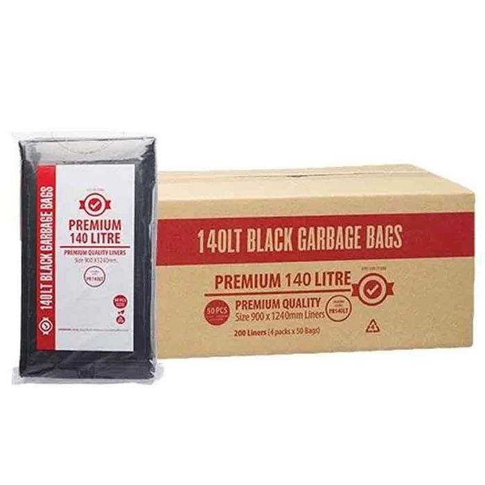 The 140L Premium Black Garbage Bags, expertly crafted from a unique blend of high-quality LDPE for exceptional strength, stretch, and ease of use. Designed to withstand heavy loads, these bags offer unparalleled reliability for waste disposal tasks. Each bag measures 1250mm x 900mm and features a star seal, ensuring superior durability and leak resistance. Packaged in convenient inner and outer cartons, with 4 packets containing 50 bags each, these garbage bags are individually dispensable for seamless handling. Plus, they are crafted from 100% recycled materials, reflecting our commitment to sustainability. Choose our Premium Black Garbage Bags for a dependable and eco-friendly solution to your waste management needs. 50 bags per packet.