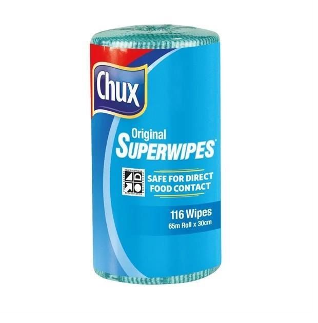 Say goodbye to stubborn grease and grime with the impressive force of the Chux Heavy-Duty Superwipes! Extra strong, extra thick and 20% more absorbent when compared to the Chux Original Superwipes. Each cloth has a thicker and heavier weave that was built to handle the big clean-up jobs, and features a super fast-drying make ideal for repeated use, and a perforated edge for a convenient tear-off which makes dispensing a breeze, so you can put the hurt on dirt! On top of that, the Chux Heavy Duty Superwipes are FZP HACCP Approved for direct food contact (Food Zone Primary) and their strongest and most absorbent range of cloths. 56cm x 30cm x 45m.