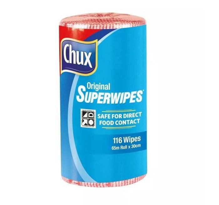 These superfast drying and highly absorbent cloths are specially designed with a grime-dispersing weave and double action holes to easily pick up dirt and food particles, leaving your surfaces sparkling clean. Thanks to its quality construction, the Chux Original Superwipes will get the job done the first time, every time, giving you a premium cleaning experience. These wipes come packed in convenient 65m rolls with perforated 56cm x 30cm sheets, so they're always ready to use.