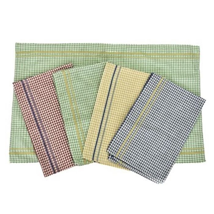 The Regular Tea Towel measures 50 x 70 cm and comes in a box of 24, featuring a blend of CVC Cotton. Each towel weighs 60 grams, offering a durable yet lightweight option for kitchen use. The pack contains an assortment of four colours, with three towels of each colour, neatly bale packed for convenience. To maintain their quality, it's recommended to launder the towels before first use, with warm machine wash, rinse, and dry instructions provided. Avoid bleaching to preserve the colours and fabric integrity.