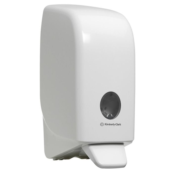 The Kimberly-Clark Professional Aquarius™ Skincare Dispenser (69480) in white is a versatile hand wash dispenser designed for commercial use, accommodating both liquid and foam soaps. Made from durable, lockable ABS plastic, it promotes hand hygiene across the workplace while providing user comfort. The dispenser holds 1000ml refill cartridges and is certified by HACCP International, ensuring it meets high hygiene standards. It features a quick-fill design with a viewing window for easy soap level checks and maintenance, all within a contemporary, high-gloss finish that is easy to clean. Measuring 264mm in height, 124mm in width, and 129mm in depth, this dispenser blends seamlessly into any washroom environment and is compatible with selectedKleenex® and Scott® handwash products. Each case contains one Aquarius™ skincare dispenser.