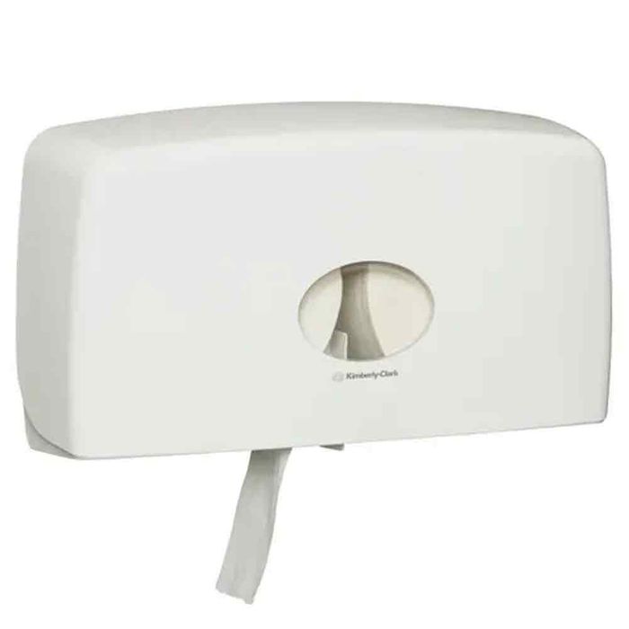 The AQUARIUS Double Jumbo Dispenser is an ideal solution for high-traffic washrooms, providing a continuous supply of toilet tissue with its double-roll capacity. Made from durable white ABS plastic, this lockable dispenser suits 01K4781, 01K4782, 01K5748, 01K5749, 01J300, and 01J300R jumbo rolls. Its secure, sleek design ensures hygiene and efficiency, making it a reliable choice for maintaining cleanliness in busy restrooms.