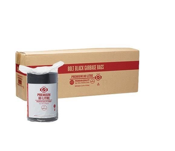 Optimize your waste disposal with our 80LT Black Bin Liners. Conveniently packed on a roll, each carton includes 250 durable bags measuring 950mm x 780mm. Designed for strength and reliability, these liners are perfect for managing medium-sized waste in both commercial and residential settings. Keep your spaces clean and organized with these efficient and sturdy bin liners. 10 rolls of 25. 950mm x 780mm.