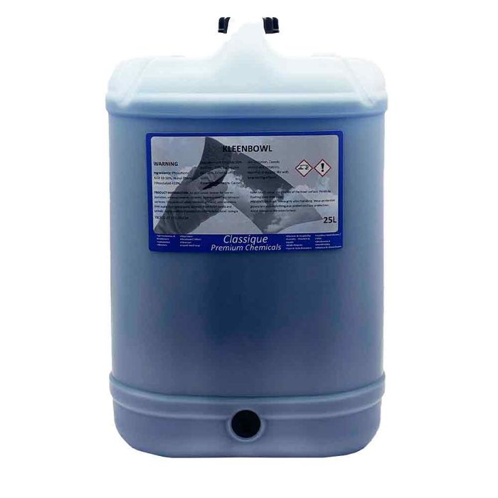 Kleen Bowl 25L is a powerful toilet and urinal cleaner formulated to remove stubborn stains, uric acid build-up, limescale, and rust from washroom surfaces. Suitable for use on porcelain, ceramic, vitreous enamel, stainless steel, and terrazzo, it effectively sanitises and restores cleanliness to toilet bowls and urinals. Its acid-based formula ensures deep cleaning and hygiene, making it ideal for both commercial and domestic applications. For best results, apply directly, allow time to work, then scrub and rinse thoroughly.