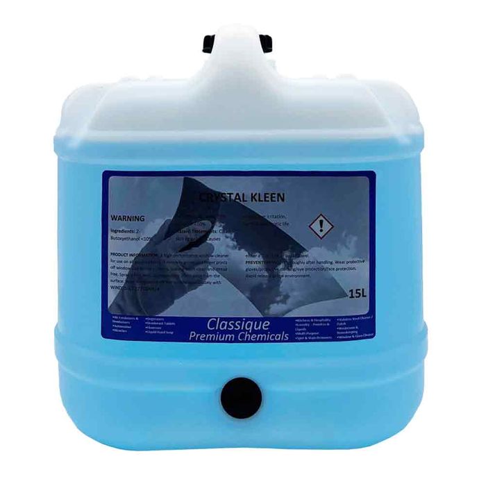 Crystal Kleen 15L Mirror & Glass Cleaner is a professional-grade solution designed to deliver a streak-free, sparkling finish on all glass and mirror surfaces. Its fast-acting, non-smearing formula effectively removes dirt, grease, fingerprints, and other contaminants, leaving surfaces crystal clear without residue. Ideal for use in commercial, industrial, and domestic settings, this cleaner is suitable for windows, mirrors, glass doors, display cases, and other hard surfaces. The 15-litre bulk packaging offers excellent value for high-volume cleaning operations, ensuring a long-lasting supply and consistent results.