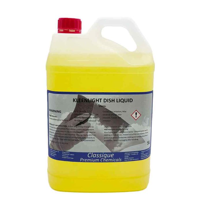 Kleenlight Dish Liquid 5L is a high-quality manual dishwashing detergent formulated for effective grease removal and everyday cleaning of dishes, cutlery, and kitchen utensils. Its concentrated formula delivers excellent cleaning performance while being gentle on hands, making it suitable for both domestic and commercial kitchens. The lemon fragrance leaves a fresh scent after each wash, and its biodegradable composition ensures it is environmentally friendly. Ideal for use in restaurants, cafes, and households, Kleenlight Dish Liquid offers a cost-effective solution for maintaining cleanliness and hygiene in the kitchen.