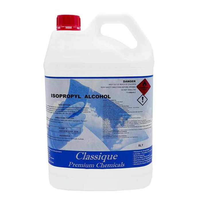 Isopropyl Alcohol 5L is a high-purity (99.9%) solution designed for professional-grade cleaning and disinfecting applications. Its fast-evaporating, residue-free formula makes it ideal for use on electronics, glass, stainless steel, and other hard surfaces. This versatile solvent is widely used in healthcare, laboratories, automotive detailing, and general industrial settings. For general disinfection, a 70% dilution (7 parts alcohol to 3 parts distilled water) is commonly recommended to maximise antimicrobial effectiveness. Please note: this product is flammable and not intended for direct skin use.