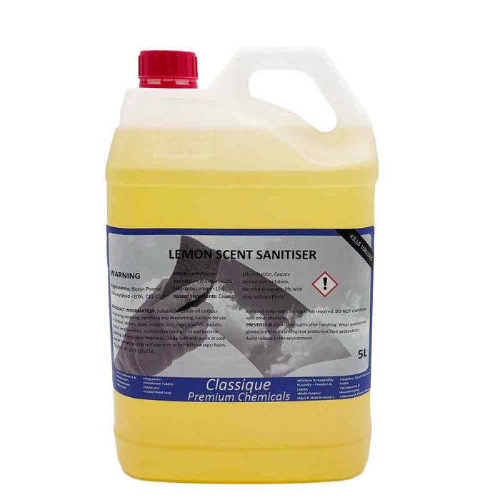 Lemon Scent Sanitiser 5L is a versatile, lemon-fragranced sanitiser formulated for effective cleaning and deodorising of most hard surfaces. Ideal for use in kitchens, bathrooms, and general areas, it helps eliminate germs while leaving behind a fresh, clean citrus scent. Suitable for both domestic and commercial use, this ready-to-use sanitiser offers a reliable solution for maintaining hygiene and freshness throughout your space.