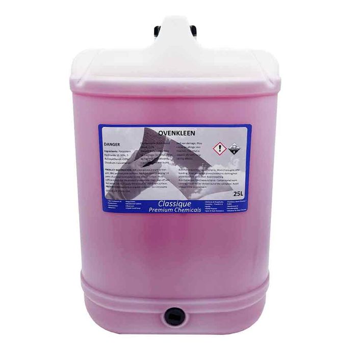 Ovenkleen 25L Oven & Grill Cleaner is a powerful, heavy-duty cleaner formulated to remove baked-on grease, fats, and food residues from ovens, grills, hotplates, and barbecue surfaces. Its fast-acting formula penetrates tough grime, cutting through layers of grease for an easy rinse and spotless finish. Ideal for commercial kitchens and food preparation areas, Ovenkleen helps maintain hygiene and performance in cooking equipment. Always use with care and appropriate protective gear.