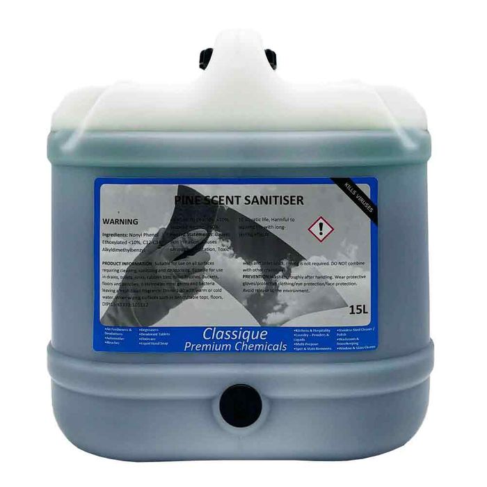 Pine Scent Sanitiser 15L is a commercial-grade surface cleaner and deodoriser designed to effectively kill a wide range of bacteria while leaving behind a fresh pine fragrance. Suitable for use on most hard surfaces, this versatile sanitiser helps maintain a clean and hygienic environment in workplaces, washrooms, kitchens, and public areas. Its powerful formula cuts through grime and leaves surfaces smelling clean and revitalised, making it ideal for regular use in commercial and industrial settings.