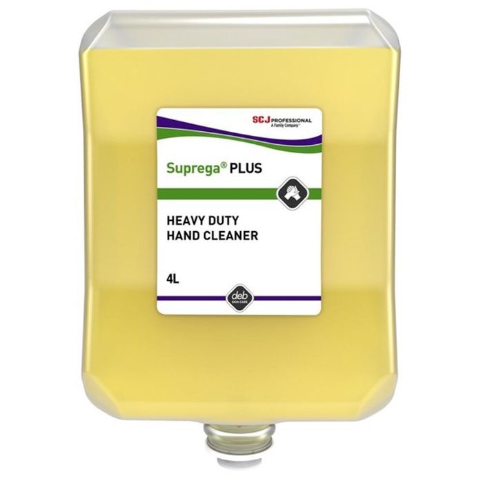 Suprega Plus Hand Cleaner 4L, your go-to solution for removing a variety of industrial soilings from your hands and maintaining cleanliness. Designed to fit into your workplace kitchen or bathroom areas, this bottle can be easily inserted into your Deb Dispenser. Formulated with a natural cornmeal formula, it effectively removes stubborn stains such as grease, oil, and grime, ensuring thorough cleaning. Whether it's bathrooms, kitchens, or any other workplace areas, this heavy-duty cleaner is suitable for removing most industrial dirt and grime. Please note that packaging may differ upon purchase. Compatible with the Deb Stoko Heavy Duty Cleanser 4L Dispenser, it offers convenience and efficiency in maintaining hand hygiene in demanding work environments.