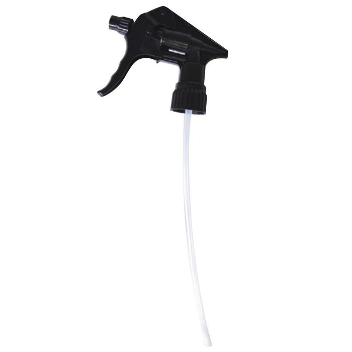 The Canyon Black Trigger is a durable, chemical-resistant spray trigger designed for commercial, agricultural, and industrial cleaning tasks. Built from high-quality materials, it ensures longevity and reliable performance even when used with harsh chemicals. The trigger features a twist nozzle that delivers a 1ml dose in either a spray or jet flow with each full press, offering versatility for various applications. With a 225mm length tube that can be trimmed to fit smaller bottles, this trigger is an excellent choice for robust and precise liquid dispensing.