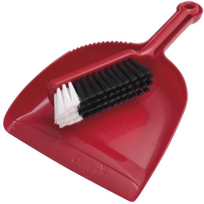 This red dustpan and brush set is your go-to for reliable and convenient cleaning, especially in hard-to-reach corners and for picking up small dirt particles. The brush is equipped with dense flagged bristles that effortlessly trap dirt, while the pan features a lip to scoop up dirt with ease. Designed for versatility, it's colour-coded to minimize cross-contamination, making it ideal for routine cleaning in offices, homes, schools, or workplaces. Plus, it includes a handy hook on the handle for easy storage and side ridges on the pan to keep the brush clean after use. Available in various colours, it ensures effective and hygienic cleaning practices wherever it's used.