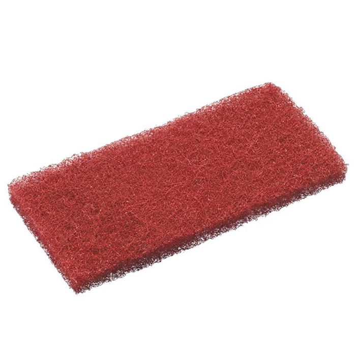 Eager Beaver Scrub Pad in Red, measuring 250 x 115mm and ideal for light scrubbing duties. This scrub pad effectively prevents and removes stubborn dirt and grime build-up, ensuring surfaces stay clean and hygienic. Sold in a convenient pack of 10, the Eager Beaver Scrub Pad is perfect for both residential and commercial cleaning tasks, combining durability and efficiency for outstanding results.