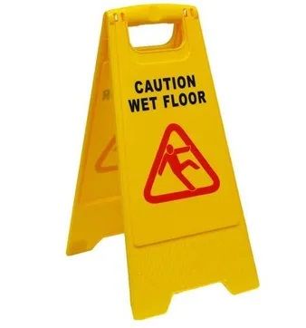 Safety Sign A-Frame in Yellow with "Caution Wet Floor" messaging. This lightweight and compact sign stands at a height of 60cm and features a convenient carry handle for easy transport. Its double-sided design ensures clear and distinct messages are visible from both directions, making it an essential tool for maintaining safety and preventing accidents in various environments.
