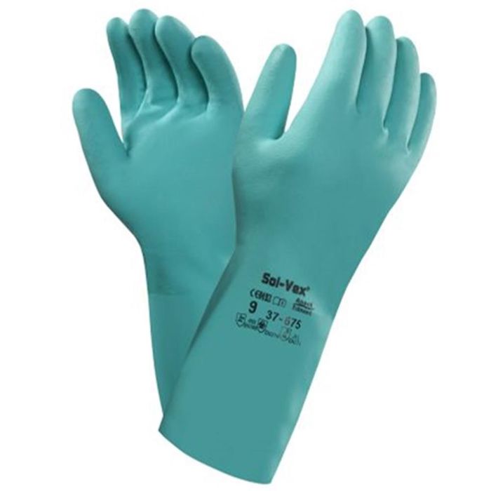 Ansell Neo Green F/L Gloves - 9, designed for comfortable and efficient use. Featuring a cotton flock lining, these gloves absorb moisture and reduce sweating, ensuring a comfortable fit during extended wear. Sold in packets of 12 (dozen), they provide excellent protection and durability for various applications.