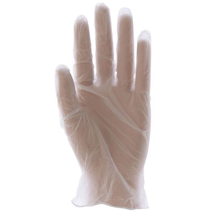CLEAR VINYL POWDERED GLOVES LARGE