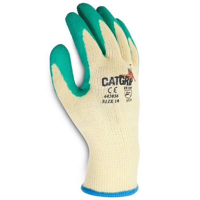 Catgrip All Purpose Glove Green features a seamless knitted polycotton shell with a green latex-coated palm, offering long-lasting durability and superior grip. The textured latex-coated palm provides excellent grip for various applications, with level 3 abrasion resistance. The breathable, flexible, and highly durable seamless knitted polycotton shell ensures maximum usability, while the knitted elastic wrist ensures a secure fit with optimal comfort. These gloves are ideal for glass handling, sheet metal work, farming, gardening, light construction, and general purposes. Sold per pair or in cartons of 120.