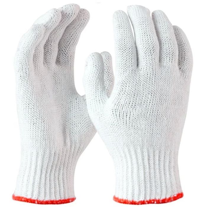 Knitted polycotton seamless glove commonly used as a liner. Great general purpose light work glove for component handling.