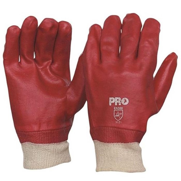 GLOVES RED PVC MENS KNITTED WRIST